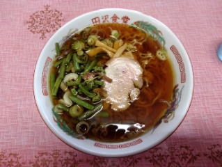 山菜中華そばをいただきました。アキモト製麺の縮れ麺に醤油の濃いスープは煮干しと鶏ガラのスープ。ワラビ、竹の子などの山菜がたっぷり入って美味しいです。