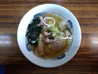 磯ラーメンをいただきました。ほたて、イカ、ツブ、ワカメが入ったあっさり味のラーメンです。