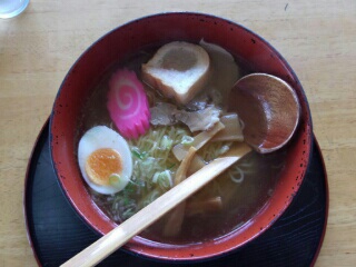 佐井村の「津軽海峡文化館 アルサス」の2階でラーメンを食べました。隣にも「ラーメンはなまる」というお店があるのですが、この日はものすごくいい天気。大きな窓から津軽海峡を眺望しながら食事ができますのでこちらに入りました。