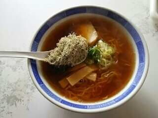 鶏ガラスープに細い縮れ麺という昔し懐かしい風味のラーメン。とろろ昆布がとても合いますのでご飯が欲しくなります。