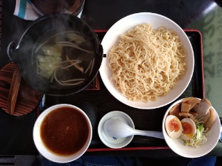そして濃厚魚介つけ麺は、つけダレの他に、出汁の入った鍋を固形燃料で出汁を温めます。このスタイルのつけ麺は初めてです。