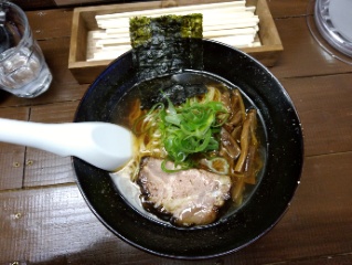能代市には毎年行っているものの、スケジュールが合わず本店になかなか行けない。まさか先に秋田市の2号店に行くとは思ってもいなかった。念願叶って初訪問。券売機で醤油ラーメンの食券を買ってカウンターでラーメンを待ちます。