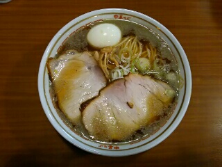 津軽衆好みのしょっぱくて煮干しが強く出たスープに、もちっとした太いストレート麺。具はチャーシュー、ネギ、シナチクで、追加で塩玉子を追加しました。