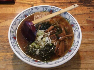 なるほど以前食べた醤油ラーメンよりも色が薄い。醤油と塩の中間の透明感のあるスープ。油も浮いているが基本的にさっぱりした昔懐かしいタイプのラーメンでホッとする。麺もシャキッとした細麺で美味しい。具はチャーシュー、シナチク、万能ネギ。