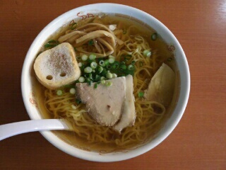 麩、ネギ、シナチクも入ったあっさり系の醤油ラーメンです。