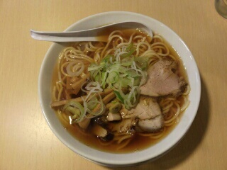 縮れ麺に具はチャーシュー、シナチク、ネギ、麩。