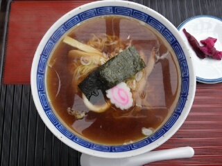 チャーシュー、ネギ、シナチク、なると、海苔が入ったシンプルなラーメンですが八戸らしく、イカも入ってましたよ。