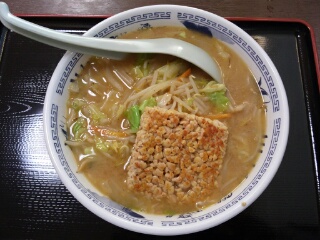 熱々で少しクリーミーな優しいスープに黄色い縮れ麺の味噌ラーメンです。