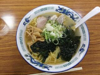 プリプリの牡蠣が2個とたっぷりのワカメが入った塩ラーメン。