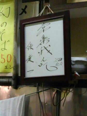 中華料理の鉄人・陳建一さんのサイン色紙があるので訊いてみると、ラーメンの鬼・支那そばやの佐野実さんと一緒にラーメンを食べに来たそうです。
