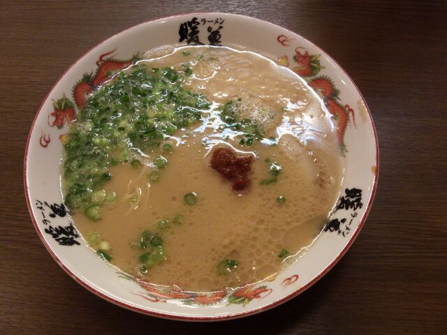 2002年九州ラーメン総選挙1位の店が沖縄に出店したんだそうです。豚骨をアルカリイオン水で炊きだした自慢のスープに、中国薬味、漢方薬などを調合した辛味ダレのラーメン。