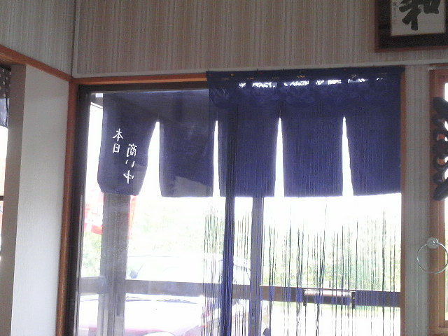 内側から文字が読めるように暖簾がかかってます。