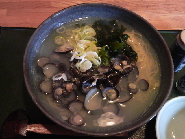 麺は細麺でうっかりすると伸びてしまいそう。一番大きい貝を探している場合でなかったぞ。