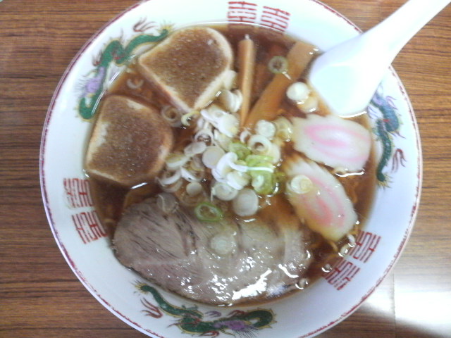 スープは薄い醤油色した浪岡町ラーメンの標準的な色合いが目に飛び込む。青森市と弘前市のラーメンとの中間色という印象を持ちます。