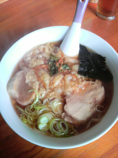 よく見ると、天ぷらラーメン?俗に言う「天中華」だな・・・青森のくまさんに教えなきゃ。