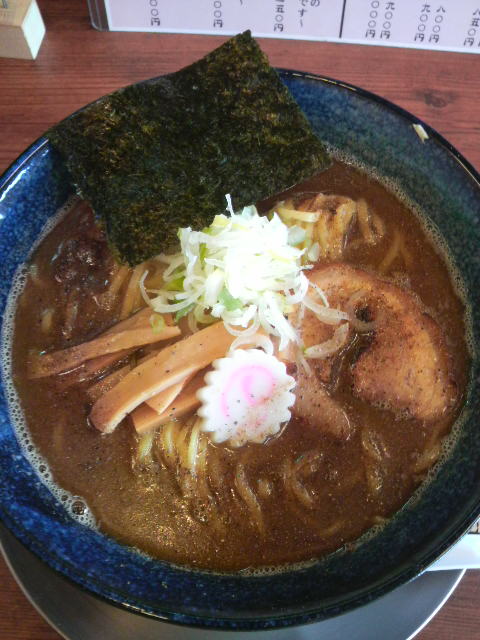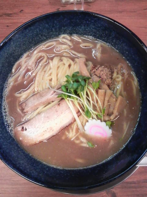タミフルとアストミンとモノフェリンが体内に残留しているので、いきなり濃厚なラーメンは拒否反応をしますので、あっさりしていると思われる「魚介醤油」を食べることにしました。