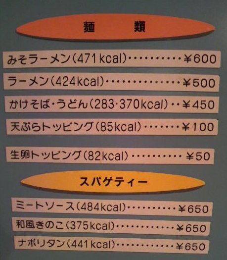メニューにはそれぞれカロリーが表示されているあたりがスポーツ施設らしいです。