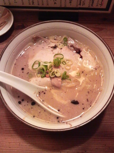 スープはライトな豚骨ベースで、浮かんでいる香味油はマー油かと思ったら、玉ねぎとニンニクで作る「たまゆ」という物らしい。
