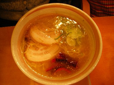 もう一つのメニュー「とんしおらーめん」は対照的に細麺で食べていくうちに魚介の旨味を感じます。エビも使用しているのかな?(間違っていたらすみません)