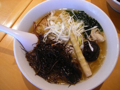 浅虫ラーメンにはネギ・メンマ・ホタテ・ワカメ・フノリ・細竹・きくらげと、海の幸山の幸がいっぱいです。