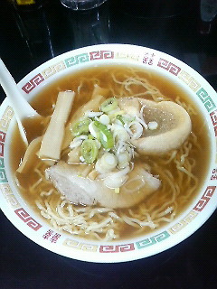 ラーメンも思いっきり黄色くて細い縮れ麺に、しょっぱめに煮込んだチャーシューとメンマ、ネギのみ。醤油色が濃くほとんど油が浮かないスープは旧青森市では多く見られる昔からのオーソドックスなスタイルだ。