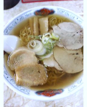 ほとんど油が浮いていないスッキリしたスープに細くて縮れのある麺。そして麩のトッピングとは青森らしい。