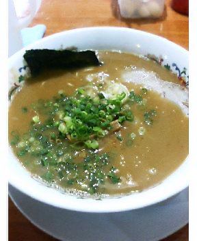 本格的な博多とんこつラーメンの店です。メニューには「豚骨を三昼夜煮込んだ」と書かれており、なるほど濃厚なスープだ。