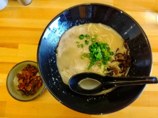 煮干し系もありましたがまずは豚骨ラーメンをいただくことにした。熟成白豚骨をカタメでお願いしました。