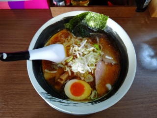 左上の醤油ラーメンにしました。熊さんの麺に具はチャーシュー、メンマ、ネギ、ゆで卵、海苔。