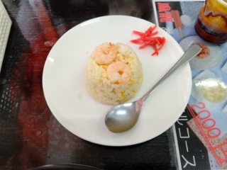 ラーメンとミニエビチャーハンと杏仁豆腐にしました。