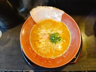 海老味噌拉麺をいただきました。オマールエビなど数種類のエビを使っているそうでエビの味がとても濃厚です。