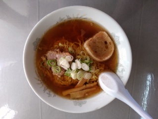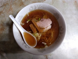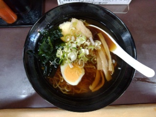 もちろんラーメンを所望。ゆで卵1/2、ワカメ、メンマ、チャーシュー、ネギの入ったラーメン。スープの塩分は高めで、これは飲んだ後にはたまらないだろう。